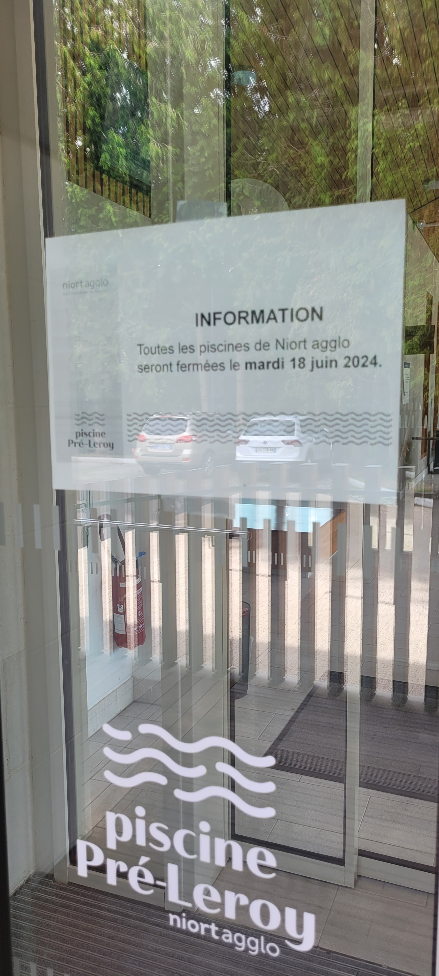 Censée être ouverte. Mais en fait affichette toutes les Piscines de niort fermées le 18 juin.... c est l appel du 18 juin à buller....