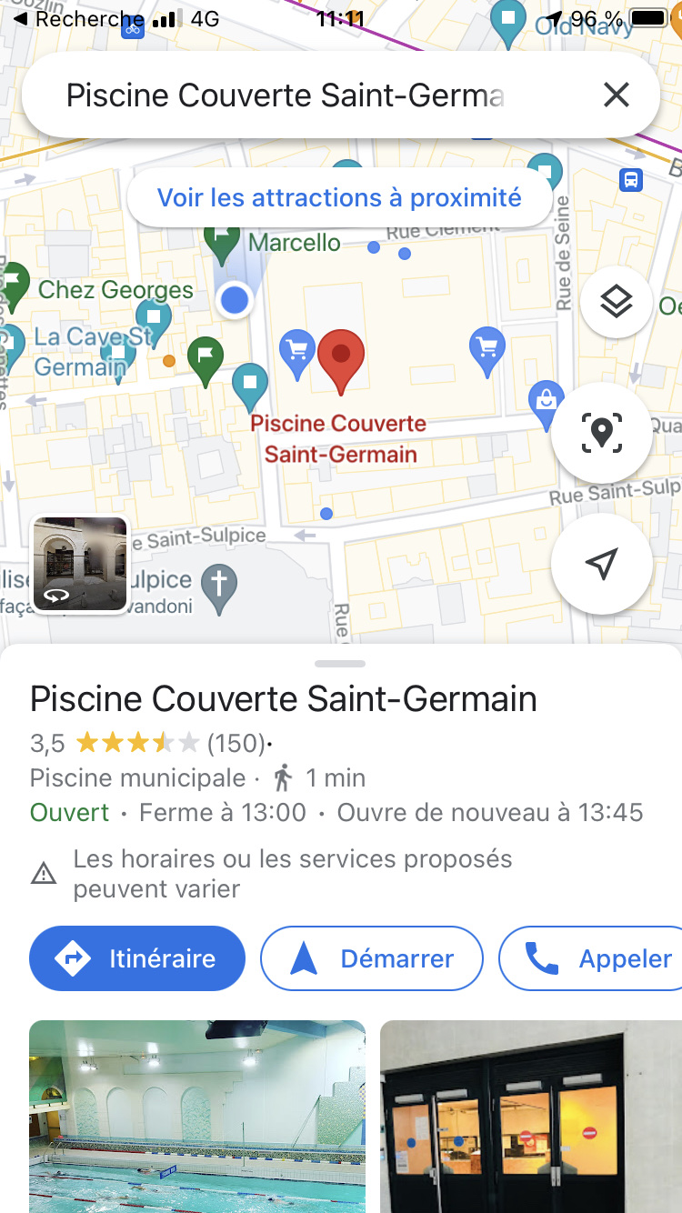 Toutes les trois à quatre semaines cette piscine change les horaires d’ouverture et elle ne les renseigne pas dans Google. Quand on arrive, ils nous disent que les horaires sont affichés sur la porte et qu’il faut les prendre en photo ! Ou aller sur Paris.fr. Je suis arrivée aujourd’hui à 11 h 10, et ils m’ont dit que ça fermait dans 20 min. Selon Google, ça ferme à 13 h. Par curiosité, j’ai consulté Paris.fr, et c’est marqué que ça ferme à 12 h… Donc là… Merci pour le respect ! Vous me faites perdre régulièrement du temps… Ce serait plus pertinent de ne pas mettre d’horaires sur Google, et d’être précis sur le vrai horaire de fermeture sur Paris.fr. Plus simple et respectueux. Ce n’est pas aux gens d’en souvenir toujours que vous fermez le bassin 30 min avant la fermeture de la piscine.