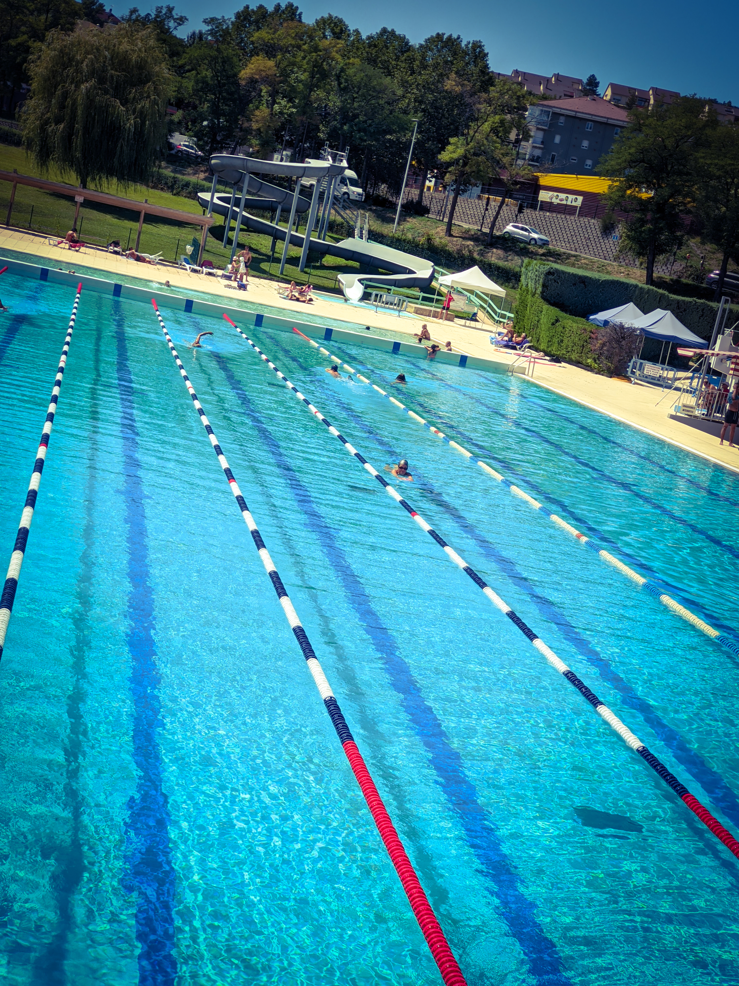 Piscine extérieure super. Lignes d'eau pour nageur très bien organisées !